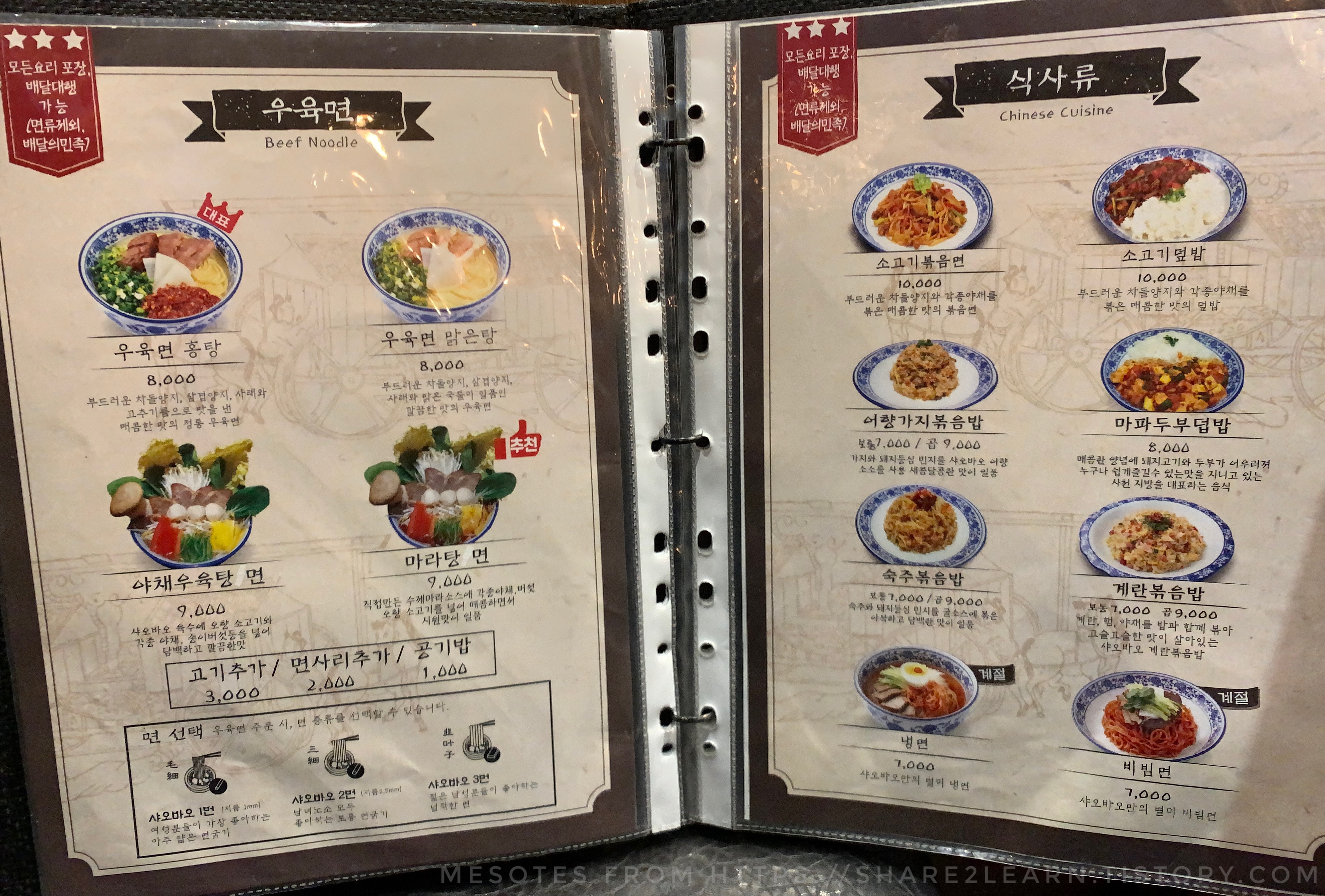 우육면이 주력 메뉴이며