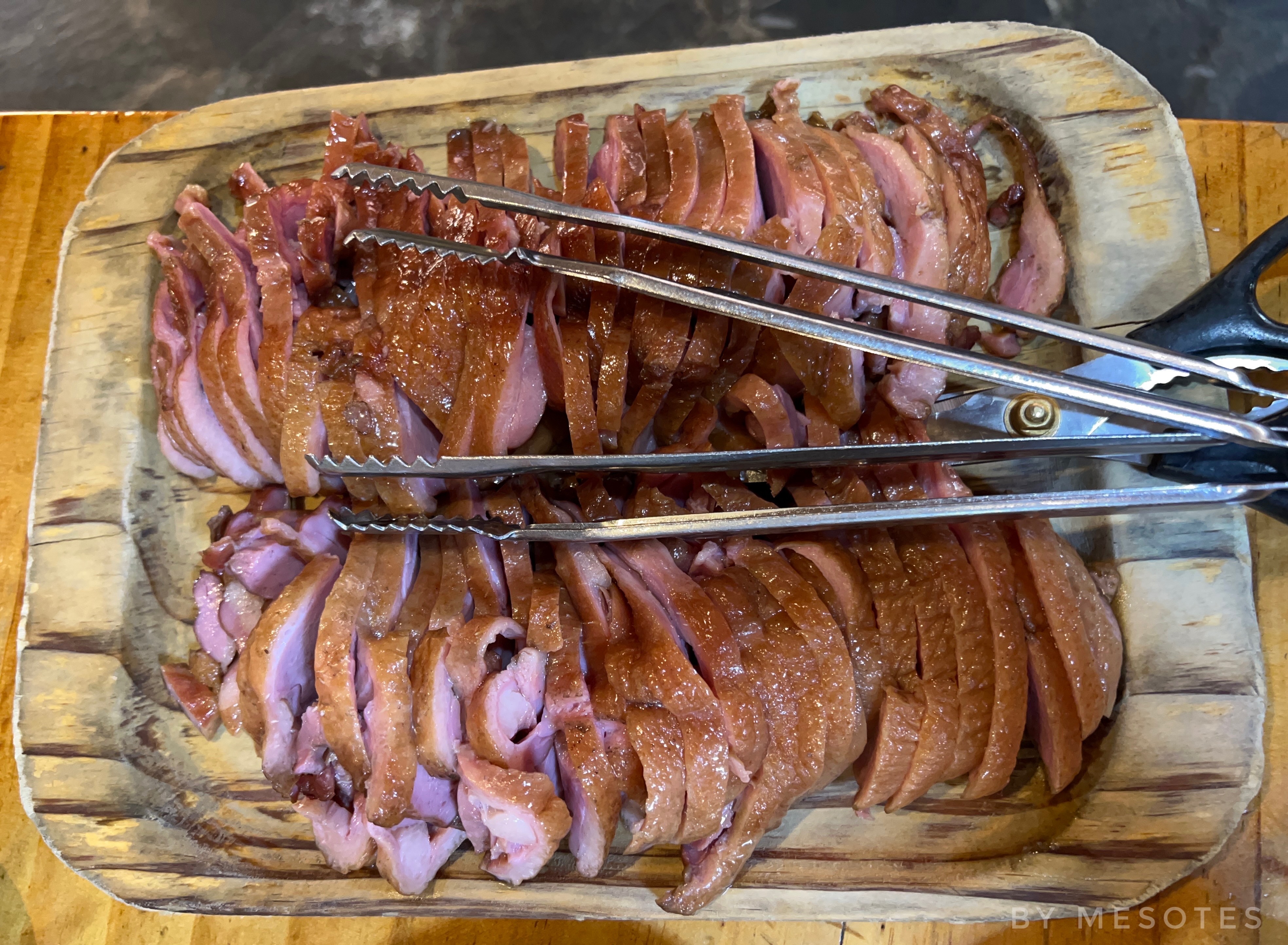 The duck meat is juicy