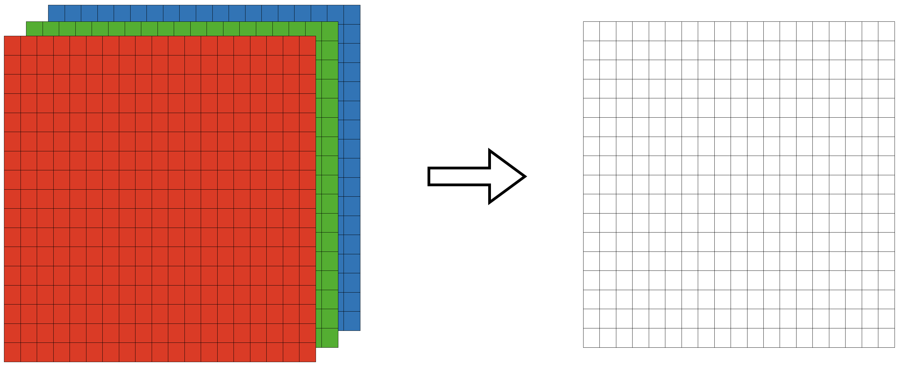 그렇다면 칼라 사진은 어떻게 표현할까? 색은 빨강, 초록, 파랑 삼원색으로 구성된다. 때문에 다음처럼 적녹청 2차원배열의 조합으로 표현할 수 있겠다.