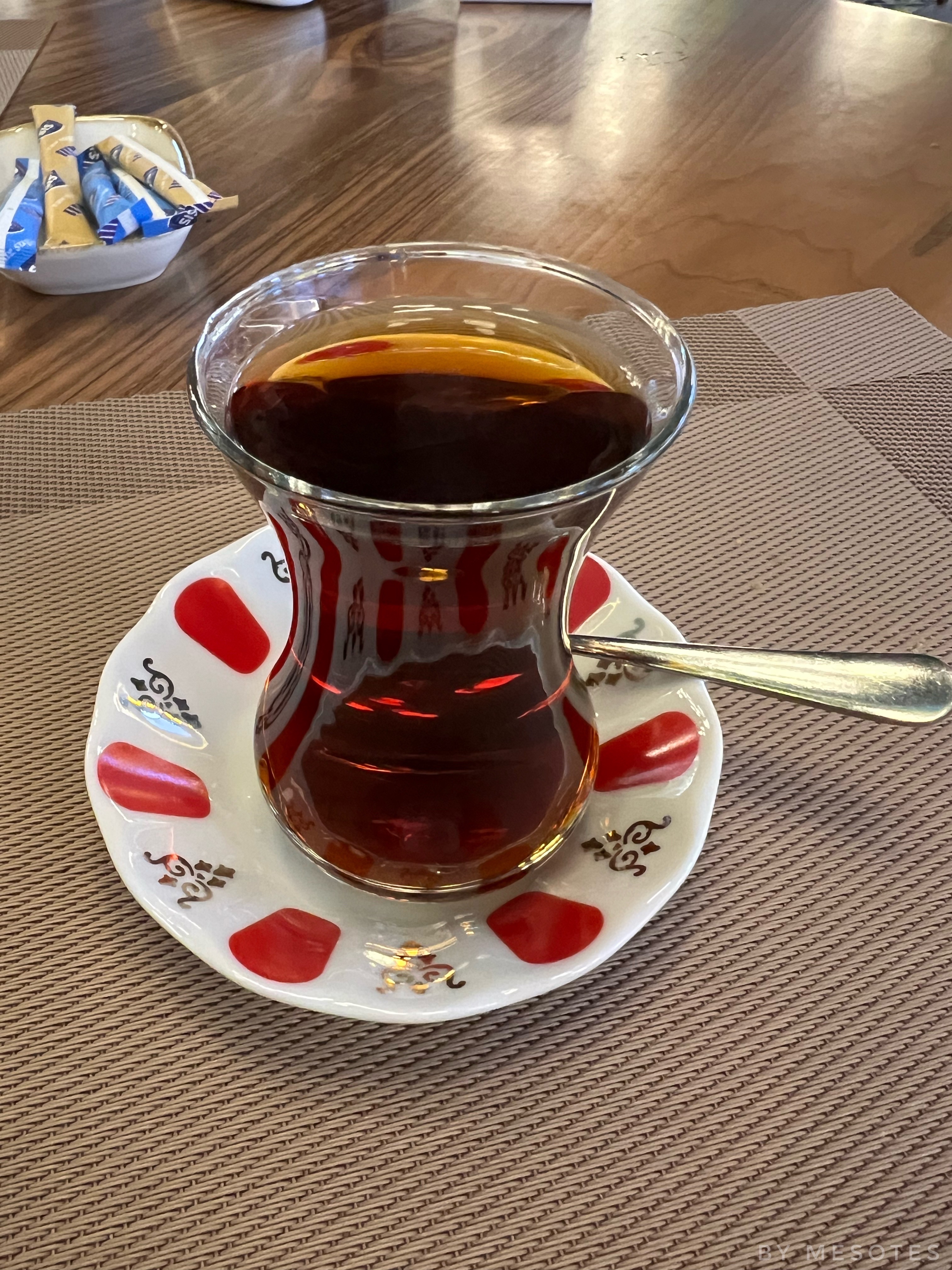 터키식 차를 한 잔 준다.