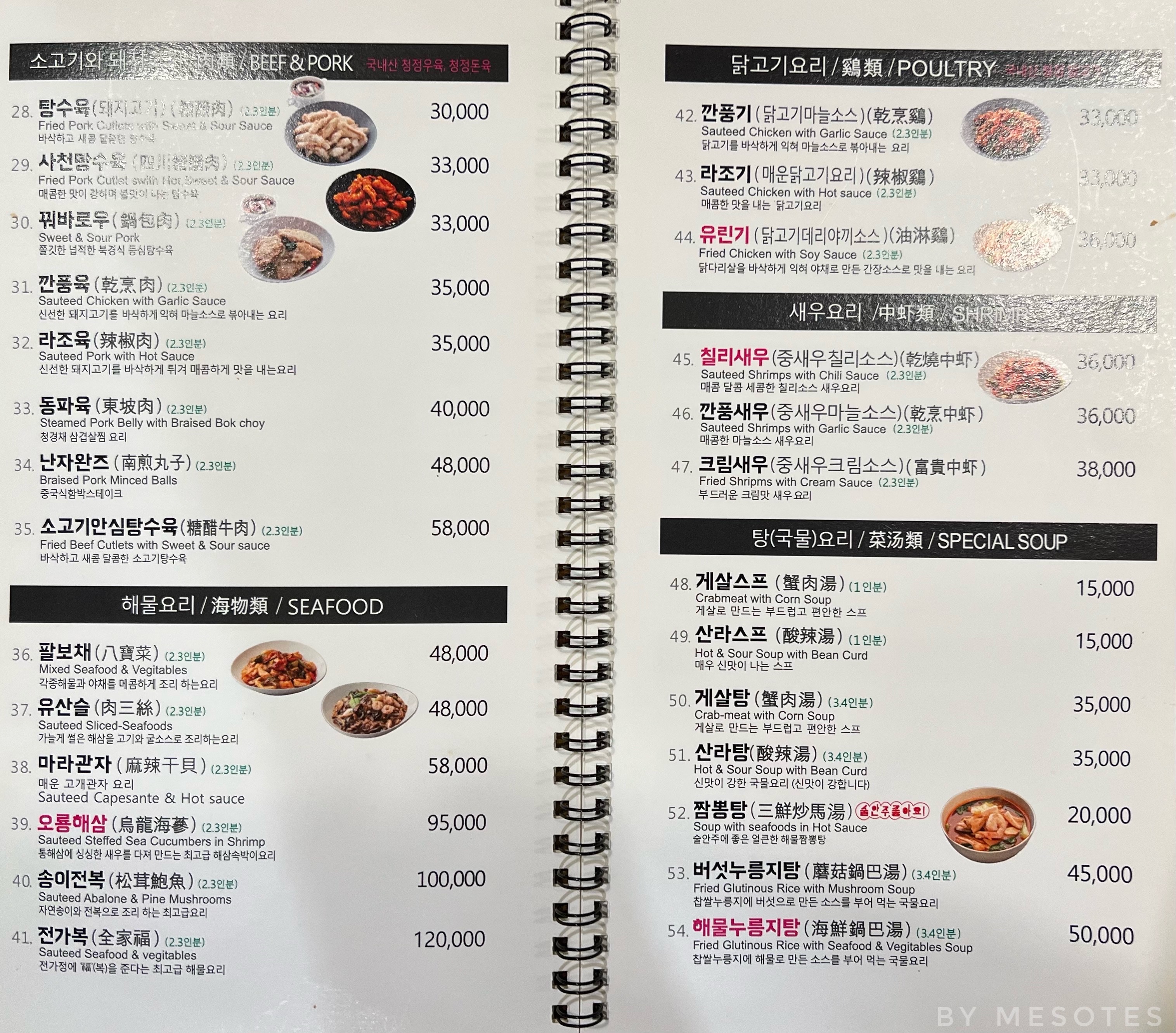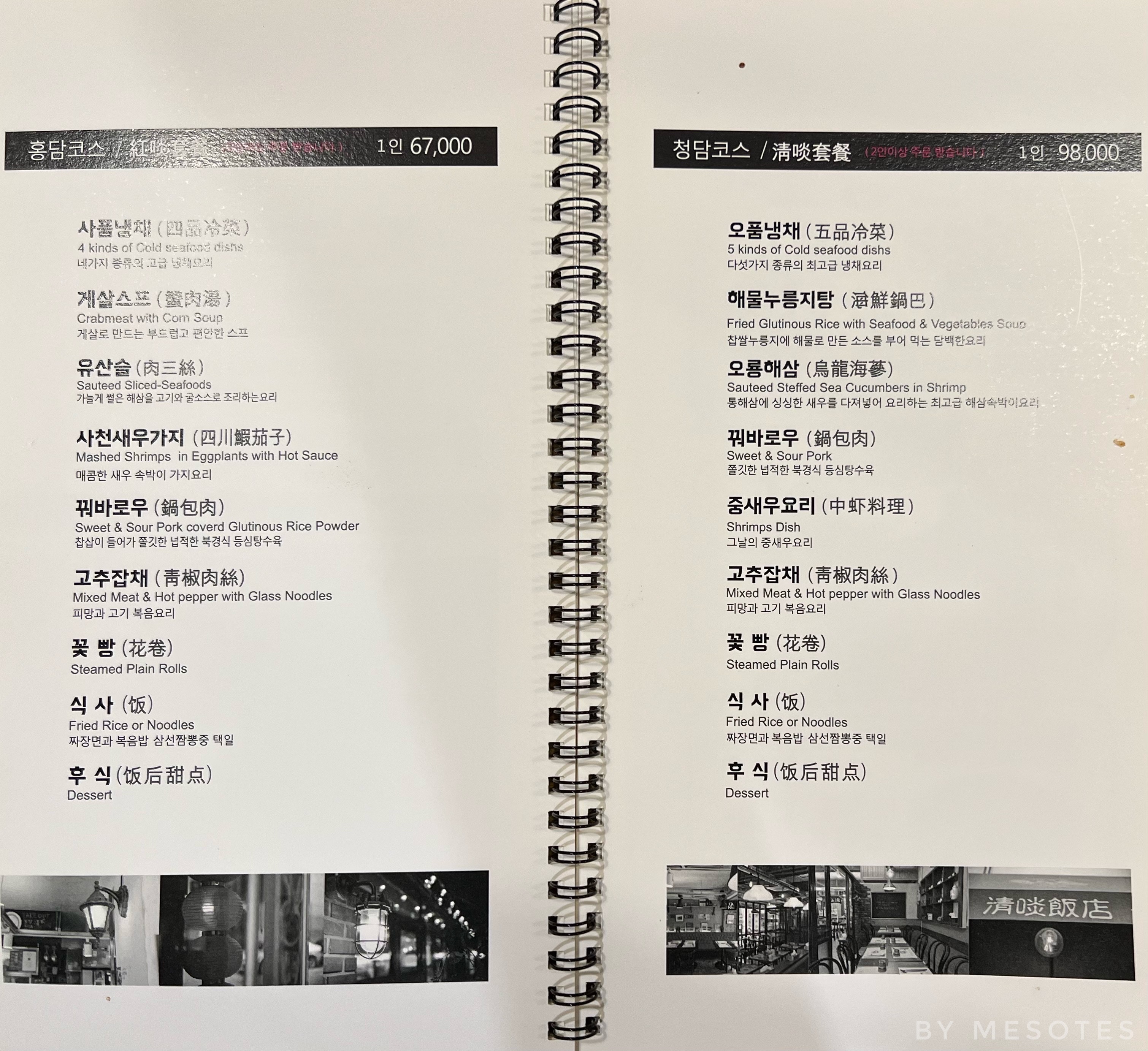 Chinese and Chinese style Korean dishes.