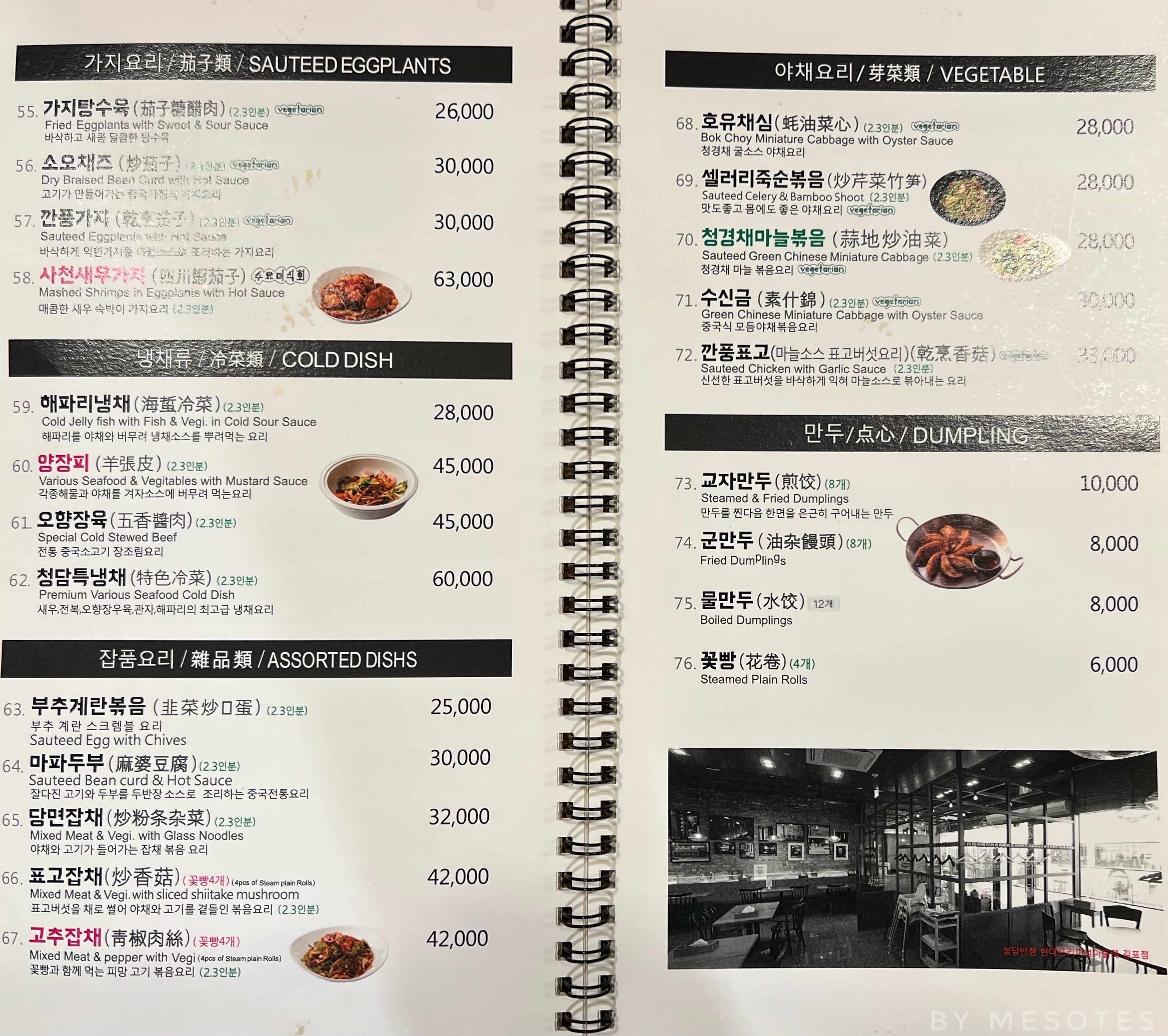 Chinese and Chinese style Korean dishes.