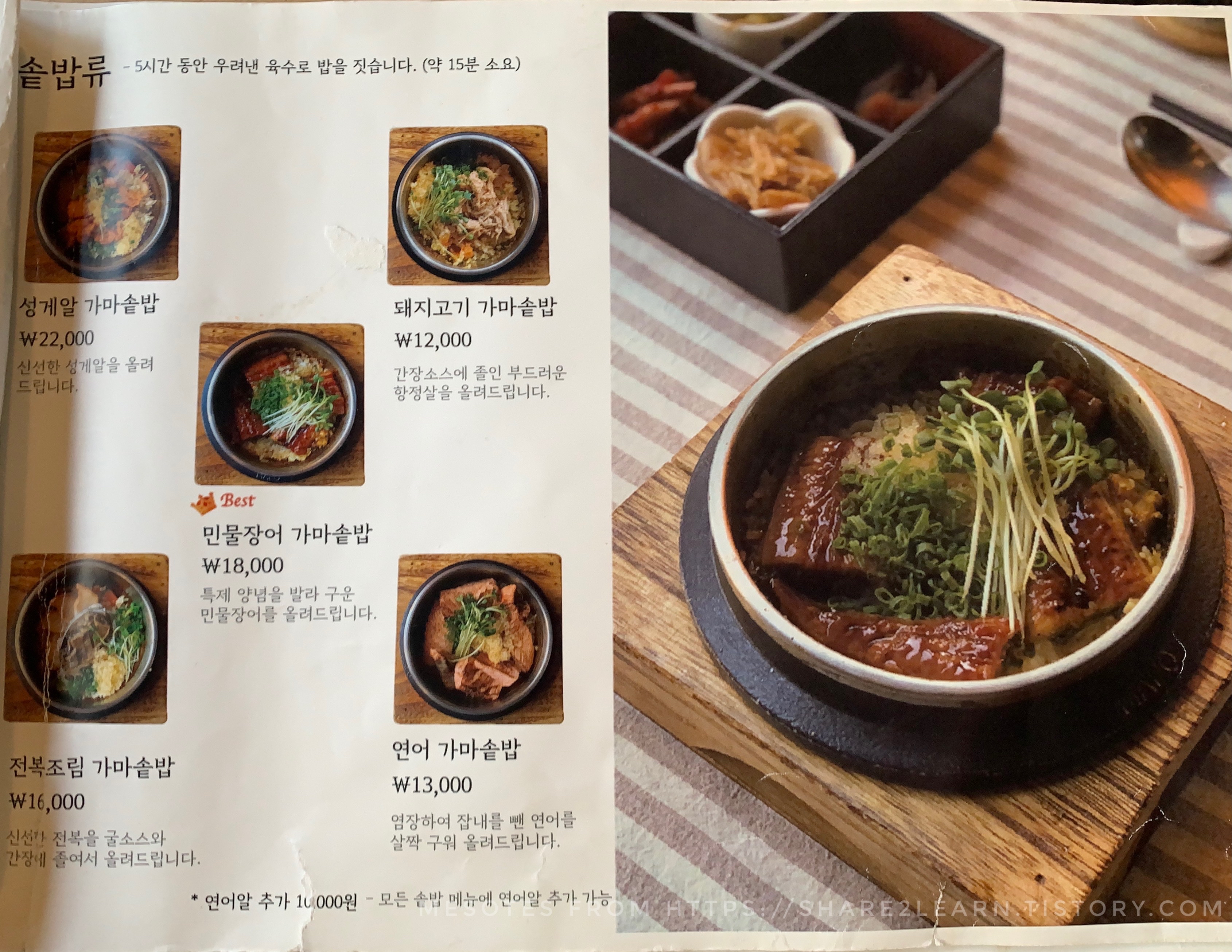 한국적인 맛의 가마솥밥이 베이스.