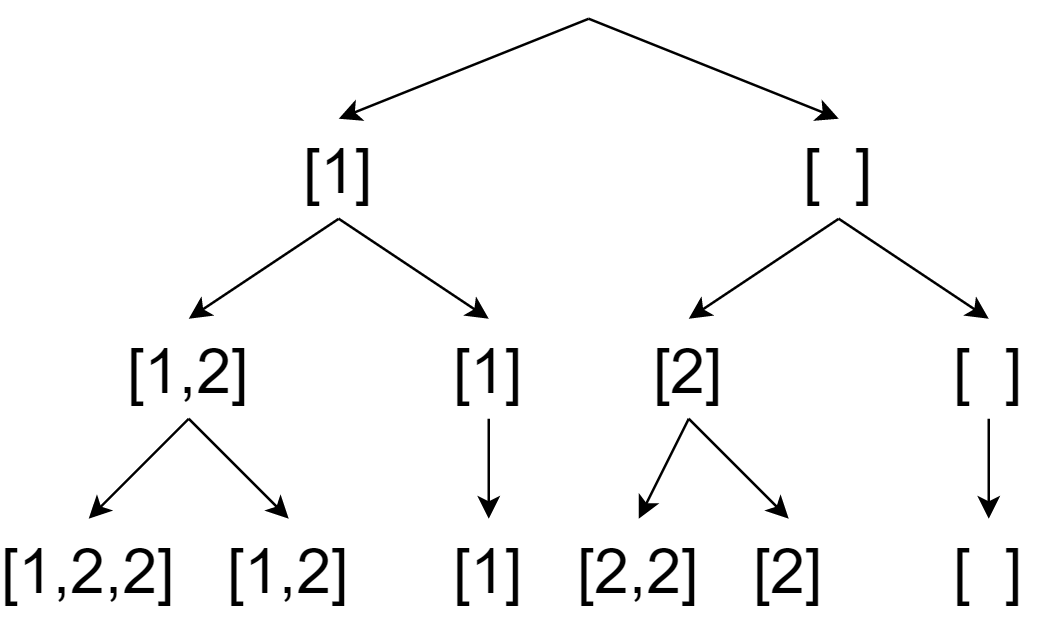 nums에서 얻을 수 있는 부분집합들을 구하되, 부분집합들은 중복되어선 안된다.